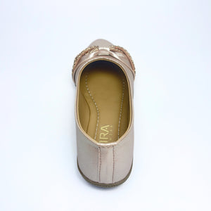 These elegant Girls Party Wear Bellies in Rose Gold are designed to add a soft, festive shine to your child’s outfit. Featuring a smooth metallic finish and a stylish embellished knot detail on the front, these bellies offer a perfect balance of fashion and comfort.