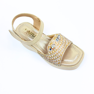 Add sparkle to your little girl’s festive look with these elegant Girls Party Wear Sandals in Champagne Gold. Designed with a beautifully crystal-embellished front strap and a soft glossy finish, these sandals offer a rich and classy appearance perfect for special occasions.