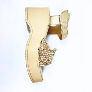 Girls Party Wear Sandals for Kids | Crystal Embellished Front Strap with Ankle Strap | Comfortable Wedge Heel | Secure & Stylish Fit | Champagne Gold | Size 5 UK