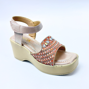 Make your little girl shine at every celebration with these elegant Girls Party Wear Sandals in Rose Gold Peach. Designed with a sparkling embellished front strap and a soft glossy finish, these sandals add a festive and premium touch to any outfit.