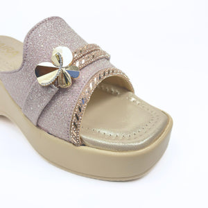 Let your little girl sparkle in style with these beautiful Girls Party Wear Sandals in Rose Gold Pink. Designed especially for kids, these sandals feature a soft glitter upper paired with an elegant flower embellishment for a charming and festive look.