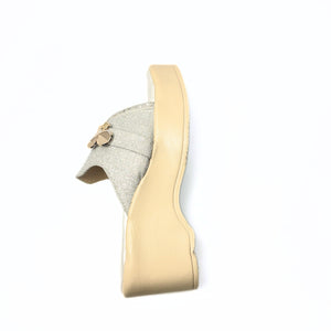 Girls Party Wear Sandals for Kids | Glitter Wedge Heel Slippers with Flower Design | Comfortable & Lightweight | Shimmer Silver | Size 2 UK